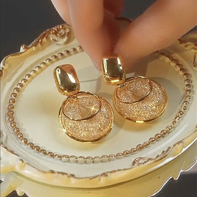 High Fashion Gold Mesh Pendant Necklace + Earrings Jewelry Set