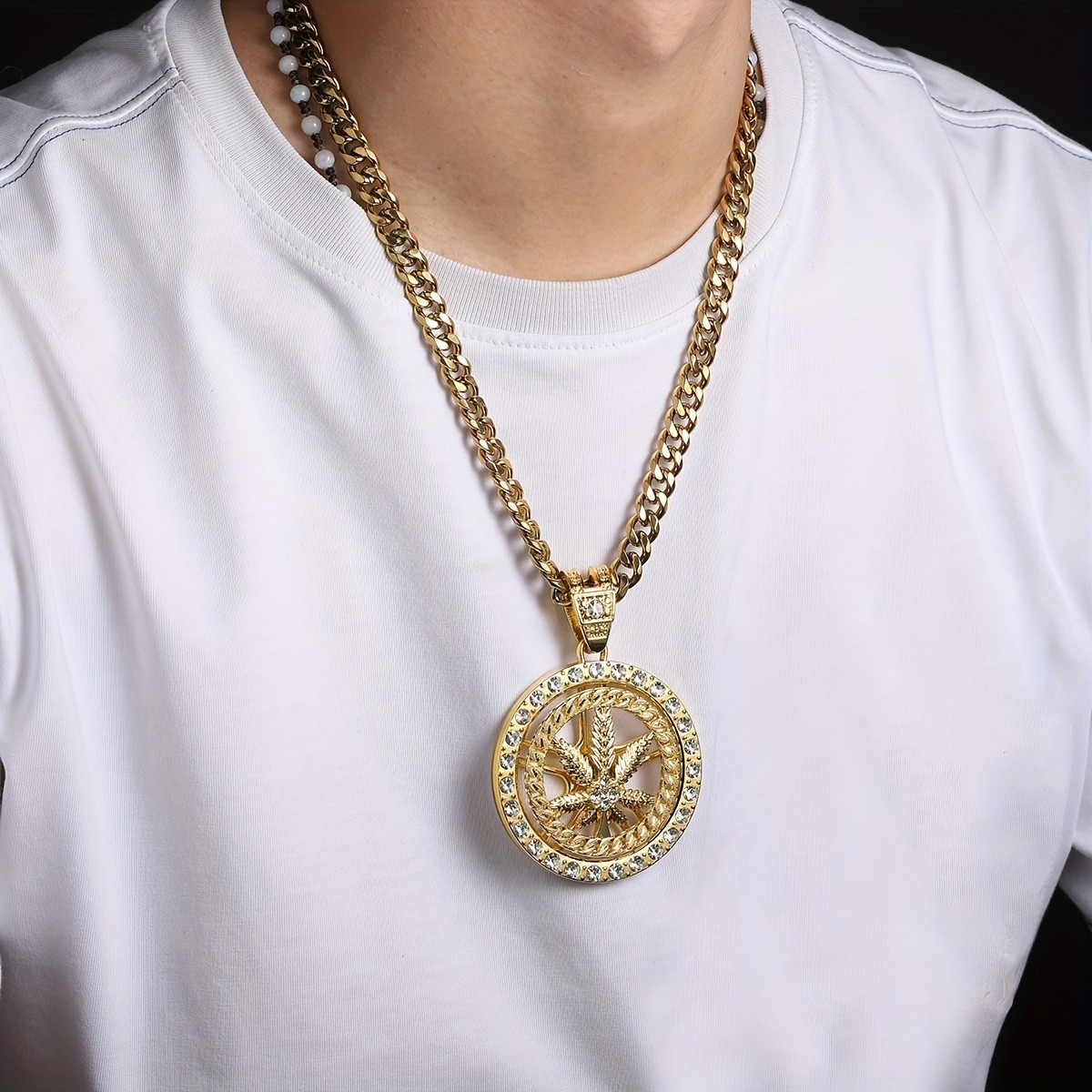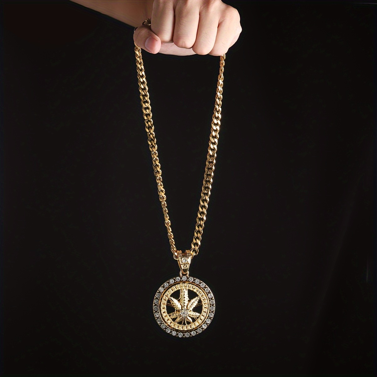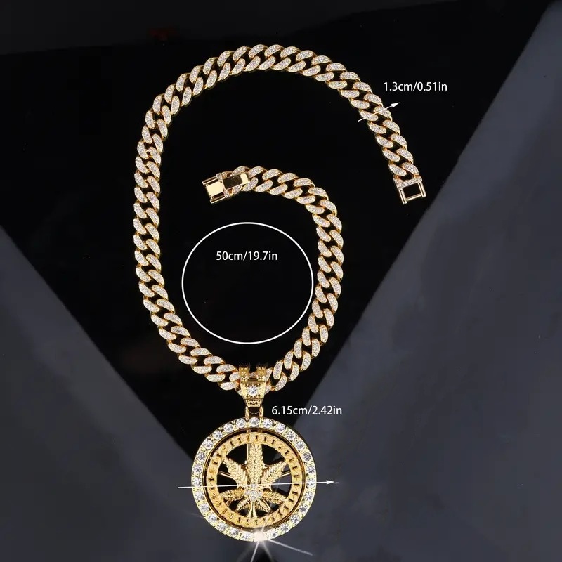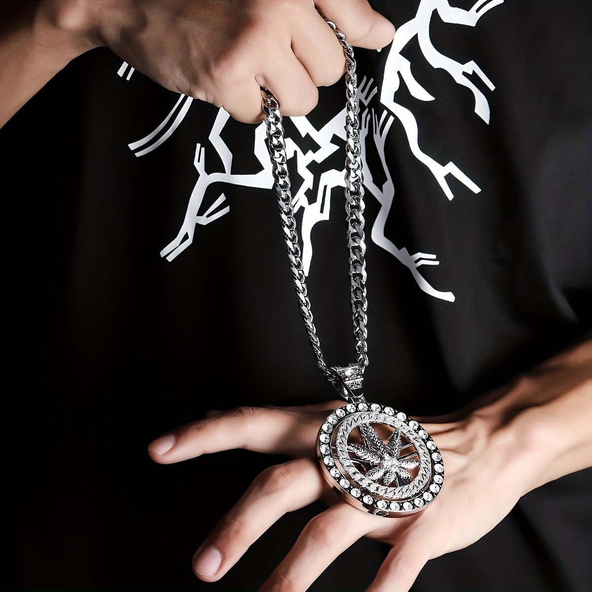 1-Fashion Hip Hop Crystal Shining Rotating Maple Leaf Pendant Necklace